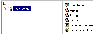 Pour ce faire, cliquez avec le bouton droit de la souris sur l'objet Facturation, sélectionnez Ayants droit de cet objet et ajoutez Annie comme ayant droit. Sélectionnez ensuite les droits à accorder à Annie, puis cliquez sur OK. Annie dispose maintenant des droits de gestion sur l'application de base de données, le groupe Comptables, l'imprimante laser et les utilisateurs Annie, Bruno et Bernard.