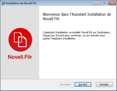 Une fois le téléchargement terminé, ouvrez le fichier NovellFilrSetup-x86.exe ou NovellFilrSetup-x64.exe en fonction de la version de votre système d'exploitation : 32 ou 64 bits.