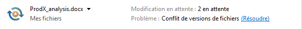 Cliquez sur en regard du conflit, puis choisissez l'une des options disponibles :