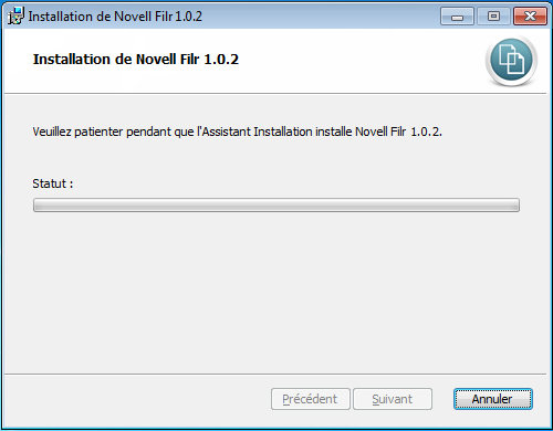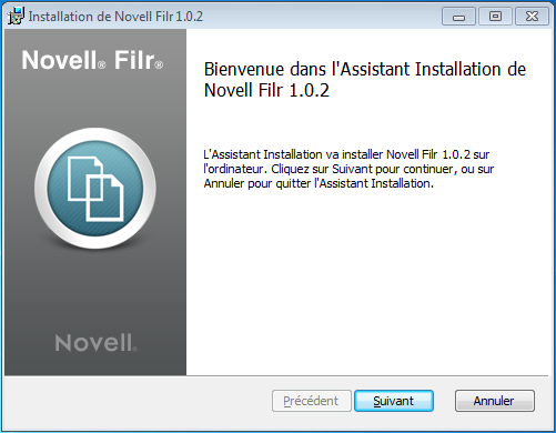 Lorsque le téléchargement est terminé, ouvrez le fichier NovellFilrSetup-x86.exe ou NovellFilrSetup-x64.exe, selon le système d'exploitation : 32 ou 64 bits.