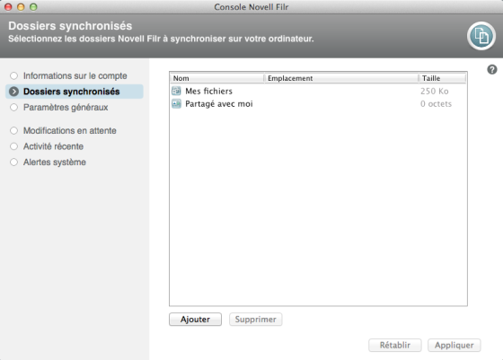 Pour configurer dans Filr les dossiers réseau à synchroniser sur votre ordinateur :