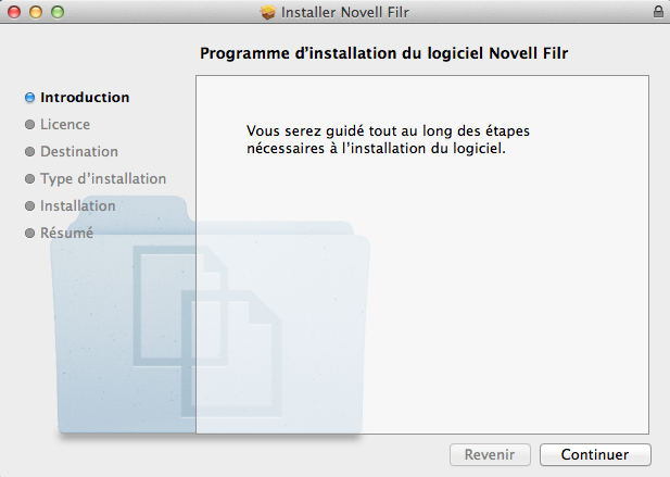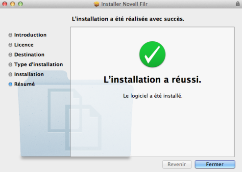 Une fois le téléchargement terminé, ouvrez le fichier NovellFilr-version.pkg.