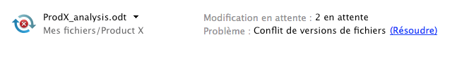 Cliquez sur en regard du conflit, puis choisissez l'une des options disponibles :