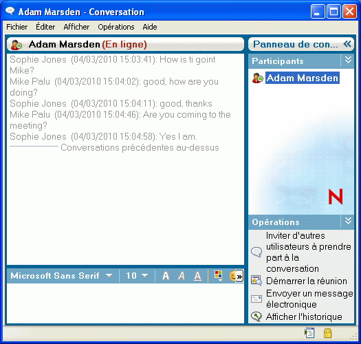 Figure 6-1 Historique personnel d'une fenêtre de conversation