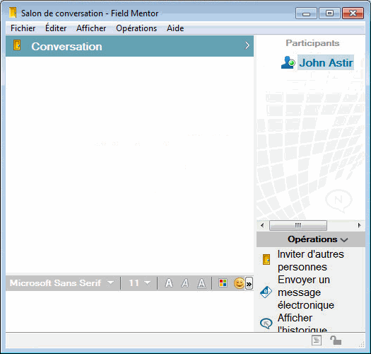 Dans les salons de conversation, plusieurs utilisateurs peuvent se joindre à un salon pour débattre d'un sujet. Si vous disposez des droits appropriés, vous pouvez créer des salons de conversation et vous joindre à ces salons sur le client.