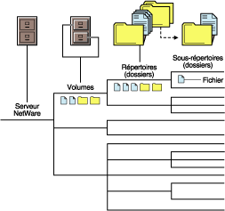 NSS est similaire au système de répertoires (ou de dossiers) utilisé pour le stockage des fichiers sur le disque dur d'un poste de travail. La différence réside dans le fait que les fichiers peuvent être placés sur le serveur et qu'ils sont accessibles via des unités réseau (de F: à Z:). Tout utilisateur réseau, auquel des droits en lecture ou en écriture ont été octroyés sur le répertoire ou le fichier, peut accéder à ces unités et aux fichiers qu'elles contiennent.