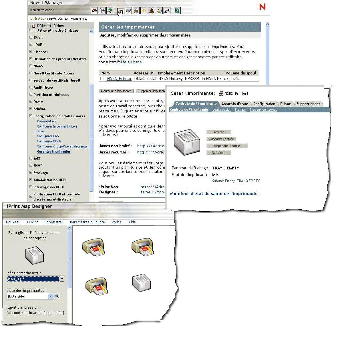 Dans Novell iManager, cliquez sur Configuration de Small Business > Gérer les imprimantes.