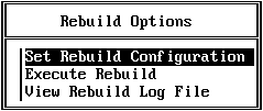 You can run the Rebuild utility interactively through the Set Rebuild Configuration option on the Setup utility's Available Options menu. As the following sections explain, you can use the Set Rebuild Configuration option to perform the following tasks: