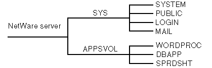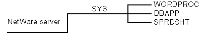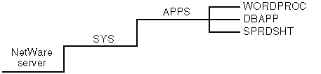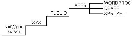 Because users generally have Read and File Scan rights in SYS:PUBLIC, you don't need to make trustee assignments or map a search drive. However, users can see and use all applications. Use this directory structure only if you want all users to have access to all applications. The following figure shows this type of directory structure. Figure 6