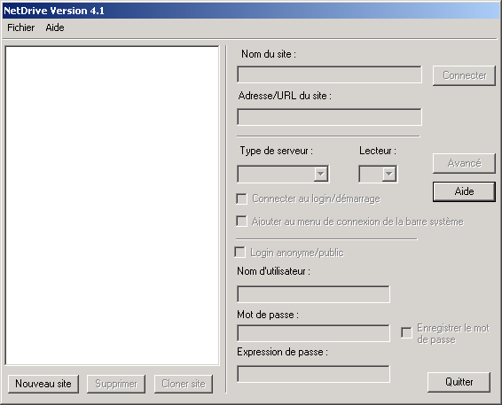 Ce menu vous permet de vous connecter rapidement à vos sites NetDrive favoris sans ouvrir la fenêtre principale de NetDrive.