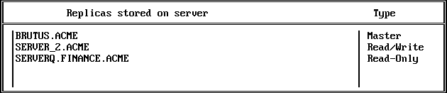 Menu 1105: Replicas Stored on Server