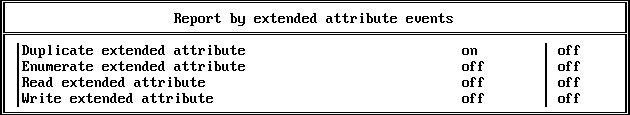 Report by extended attribute events. This menu shows the extended attribute audit events that are included in the current filter.