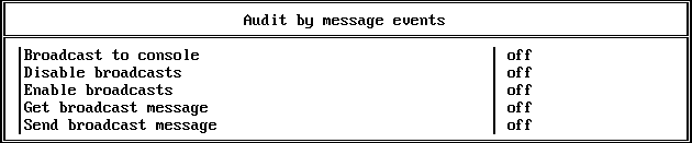 2. After preselecting events to be audited, press Esc to return to the Auditing configuration menu (497, 498, or 499).