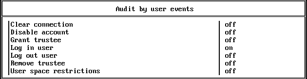 User events include activities such as bindery logins and logouts and trustee assignment changes.