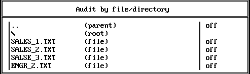 1. Choose Audit by file events from the Audit by event menu (401) and press Enter to edit the list of preselected file events.