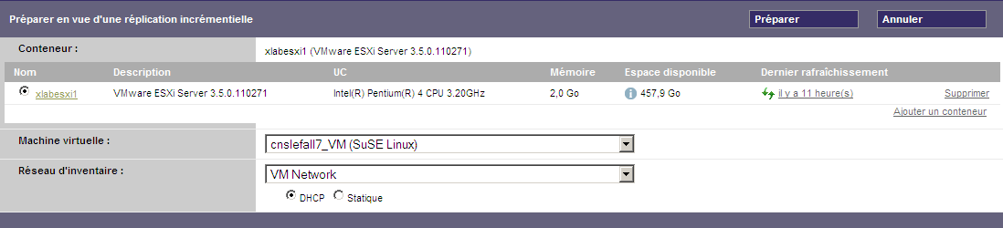 Le client Web PlateSpin Forge affiche la page Préparer en vue d'une réplication incrémentielle.