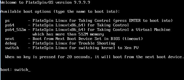 Redémarrez la VM et assurez-vous qu'elle démarre toujours dans l'environnement système PlateSpin.