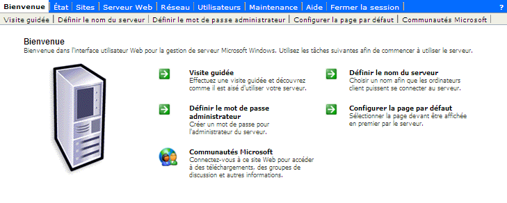 Figure 1-1 Interface utilisateur Web pour la gestion de serveur Microsoft Windows