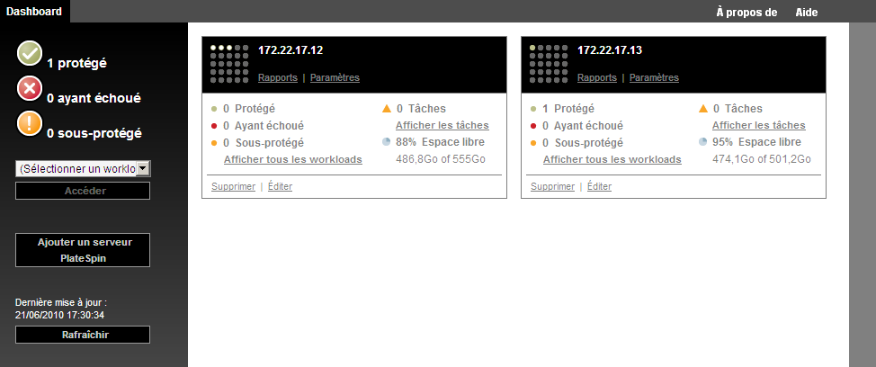 REMARQUE :lorsque vous vous loguez à la console de gestion sur une instance PlateSpin Forge, cette dernière n'est pas automatiquement ajoutée à la console. L'ajout doit se faire manuellement.