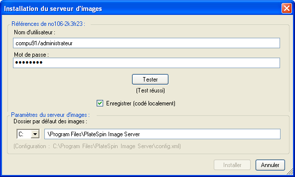 Donnez les références de l'administrateur pour l'hôte sélectionné et spécifiez le répertoire de votre choix pour les fichiers image.