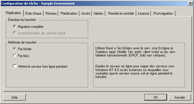 L'étendue des données de workload transférées de la source vers la cible ( et ). Uniquement applicable aux tâches de synchronisation des serveurs.