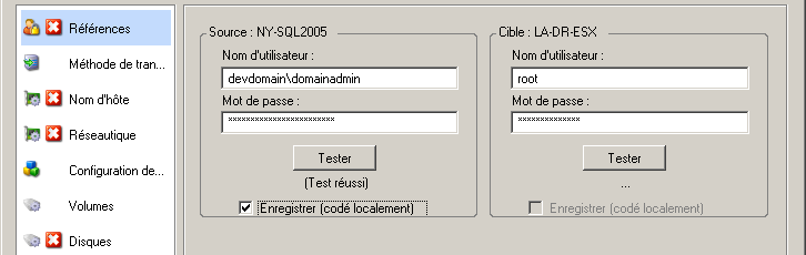 Lors de la configuration d'une tâche de migration, vous pouvez valider les références fournies et les enregistrer pour les tâches de migration ultérieures utilisant la même source et la même cible.