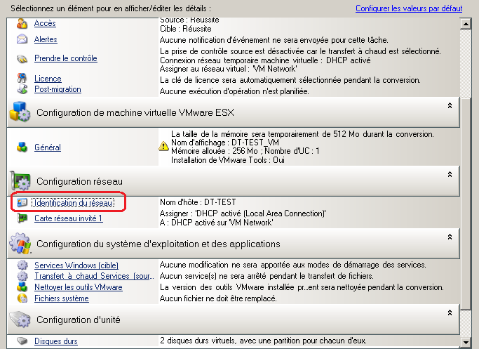 En mode Avancé : dans la fenêtre Tâche de migration, sous la section Configuration réseau, cliquez sur .