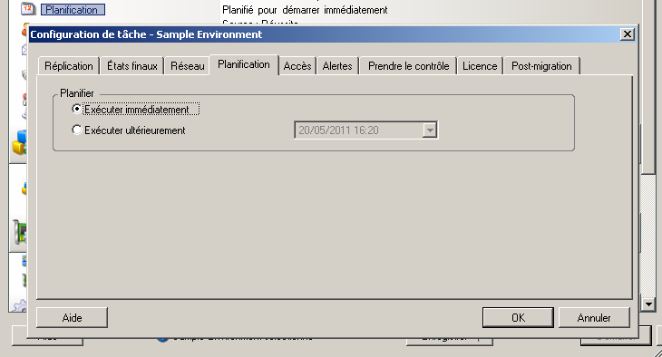 Pour accéder aux options de planification d'une tâche de migration :