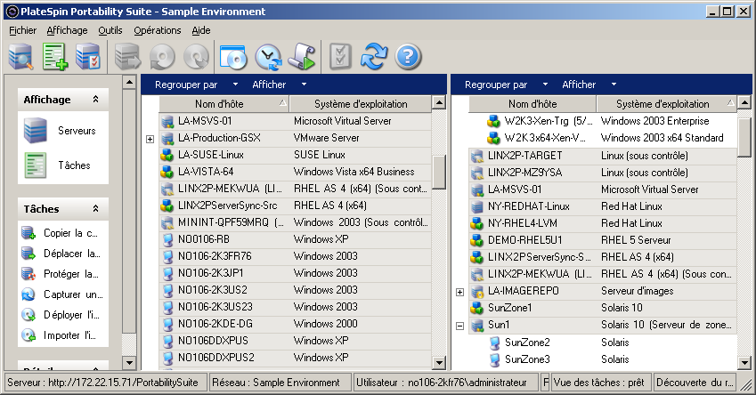 Figure 2-1 Vue Serveurs du client Portability Suite