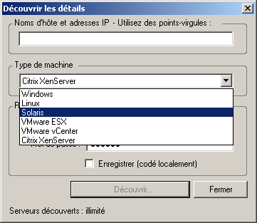 Sélectionnez le type de machine et spécifiez les références administrateur de la machine en cours de découverte. Pour ce faire, suivez les instructions ci-dessous :