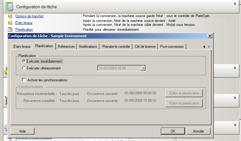 La planification constitue un élément important d'une tâche de conversion. Les options de planification vous permettent de spécifier :