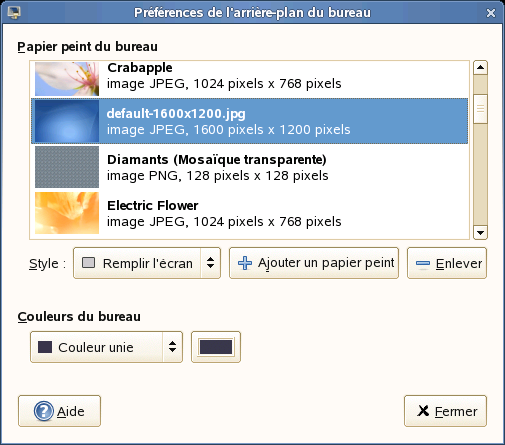 Pour sélectionner un papier peint dans les images prédéfinies, naviguez jusqu'à l'image voulue et sélectionnez-la. Après la sélection, l'arrière-plan change automatiquement.