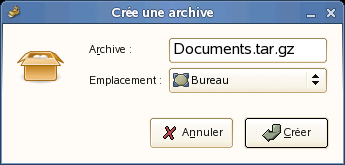 Acceptez le nom d'archive par défaut ou indiquez un autre nom. Choisissez tar.gz pour la forme d'archive la plus courante.