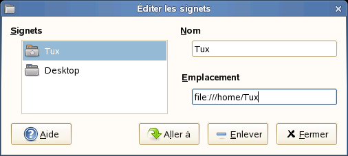 Utilisez la fonction Signets de Nautilus pour marquer vos dossiers favoris.