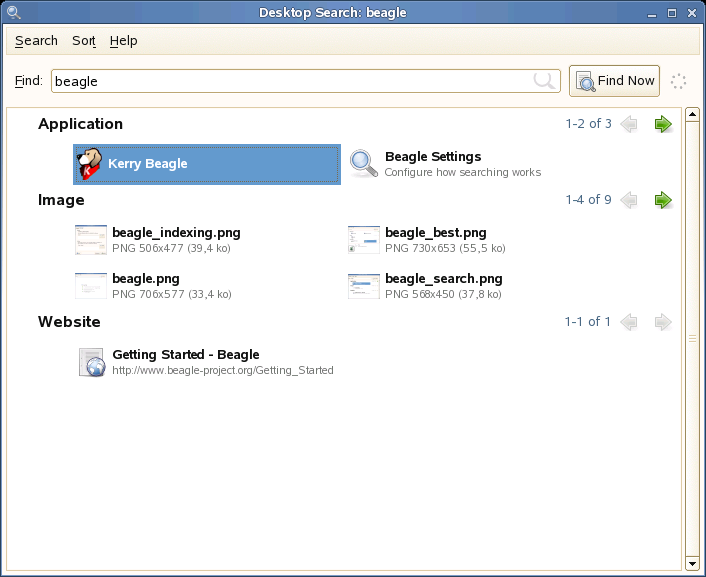 Utilisez le menu pour limiter votre recherche aux fichiers situés dans un emplacement particulier, par exemple votre carnet d'adresses ou des pages Web, ou pour n'afficher qu'un type spécifique de fichier dans votre liste de résultats. Le menu permet de classer les éléments de la liste de résultats par nom, par pertinence ou par date de dernière modification.