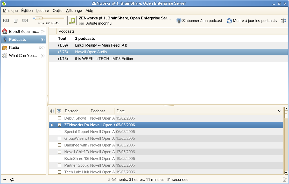 Figure 16-7 Podcasts dans Helix Banshee