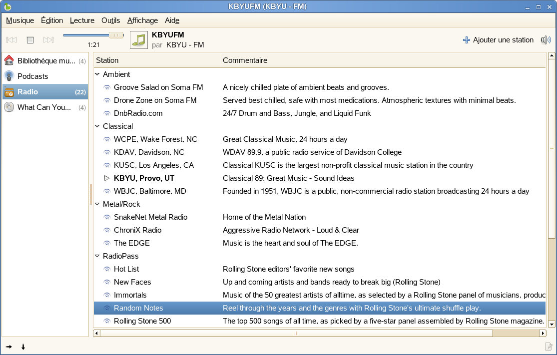 Figure 16-6 Stations radio Internet dans Helix Banshee