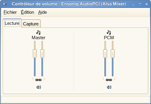 Pour augmenter le volume, faites glisser le curseur vers le haut. Pour réduire le volume, faites glisser le curseur vers le bas. Pour verrouiller les canaux mélangeurs gauche et droit ensemble, sélectionnez l'option de ce mélangeur. Lorsque vous verrouillez les canaux mélangeurs, le Contrôle du volume GNOME synchronise les deux mélangeurs. Pour couper un mélangeur, sélectionnez l'option (Muet) de ce mélangeur. Lorsque vous réglez l'atténuateur d'un canal muet, le Contrôle du volume GNOME désélectionne l'option Mute de ce mélangeur.