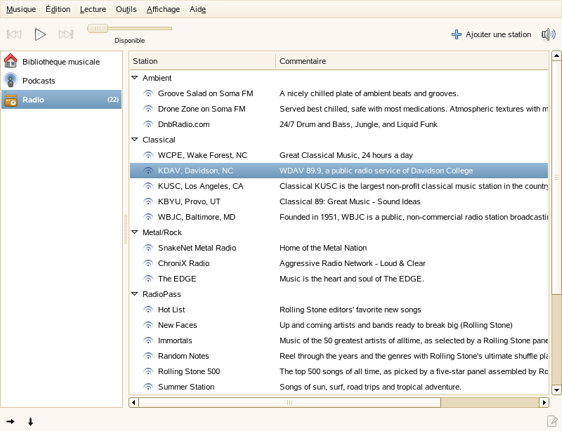 Vous pouvez ajouter un thème à la liste des thèmes disponibles. Le nouveau thème doit être un fichier archive de type tar et zip (fichier .tar.gz).