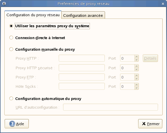 Figure 2-27 Boîte de dialogue Configuration du proxy réseau