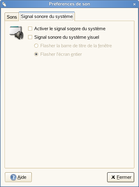 Figure 2-33 Boîte de dialogue Préférences de son—Page Signal sonore du système