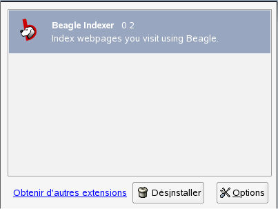 Pour ajouter une extension, cliquez sur . Dans l'angle inférieur droit de la fenêtre, cliquez sur . La page Web de mise à jour des extensions Mozilla s'ouvre. Elle propose un certain nombre d'extensions. Cliquez sur l'extension à installer, puis sur le lien d'installation pour la télécharger et l'installer. Lorsque vous redémarrez Firefox, la nouvelle extension fonctionne. Vous pouvez également consulter les différentes extensions sur la page Modules complémentaires Firefox.