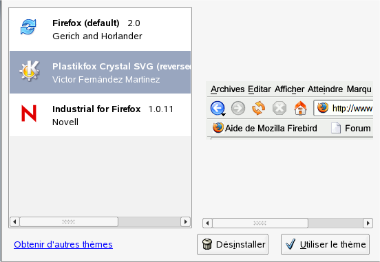 Figure 12-4 Installation de thèmes Firefox