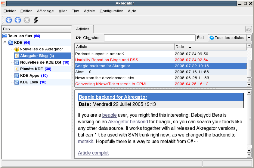Vous pouvez lire l'article complet soit dans Akregator, soit dans un navigateur externe. Lorsque vous cliquez sur , vous pouvez sélectionner l'article.