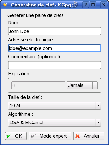 Figure 10-1 KGpg : création d'une clé