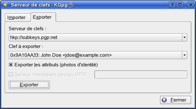 Figure 10-5 Exportation d'une clé vers un serveur de clés