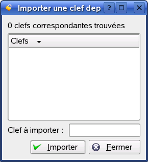 Figure 10-3 Écran de recherche pour l'importation d'une clé