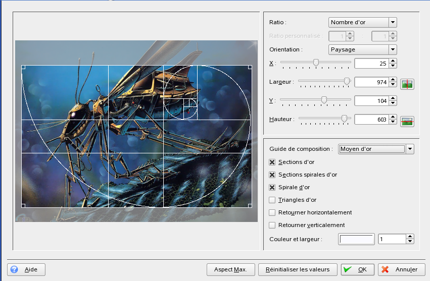 Rapport (1:1.618) traditionnellement utilisé par les artistes et les architectes pour créer des résultats harmonieux.