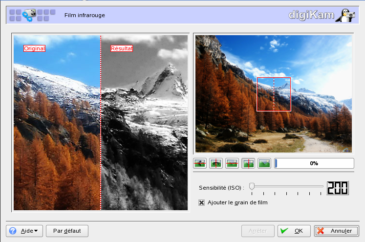 Simulez l'utilisation d'un film infrarouge pour obtenir un effet légèrement surréel. Le résultat est différent à tous points de vue de l'original. Ajoutez du grain et réglez la sensibilité (ISO) du film pour donner à l'image une apparence plus artistique.