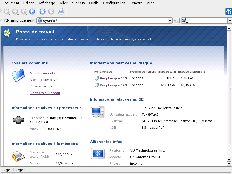 Affiche des informations concernant le matériel, l'état du réseau, le système d'exploitation, les disques durs, les dossiers communs et les périphériques amovibles. Pour plus d'informations, reportez-vous à Section 1.3.3, Accès aux supports amovibles.